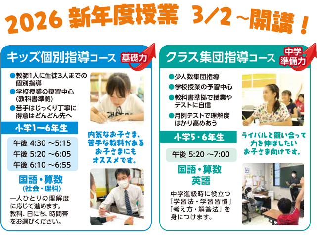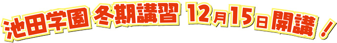 冬期講習(小学生)2025公開日時 2025年11月13日 登録者 wpmaster ★冬期講習受講割引特典★ ★冬期講習コース表★ ※特別受講料:①12/12(金)までにお手続き完了、②池田学園で初めてご受講①・②とも満たす場合に適用できます。(中3生除く)・上記以外のコースもございます。詳しくはお問い合わせください。 12月中の入塾お申込みで、最大の割引特典があります。(上記の冬期講習割引特典をご覧ください。) ▶クラス指導冬期講習(中学部) ▶個別指導冬期講習