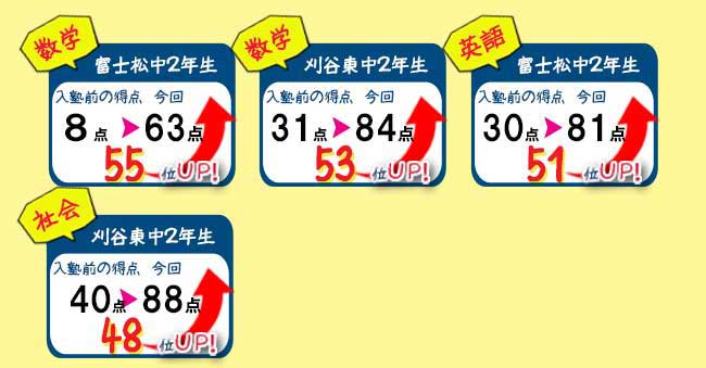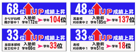 ①入塾から半年以内の塾生の成績アップ事例